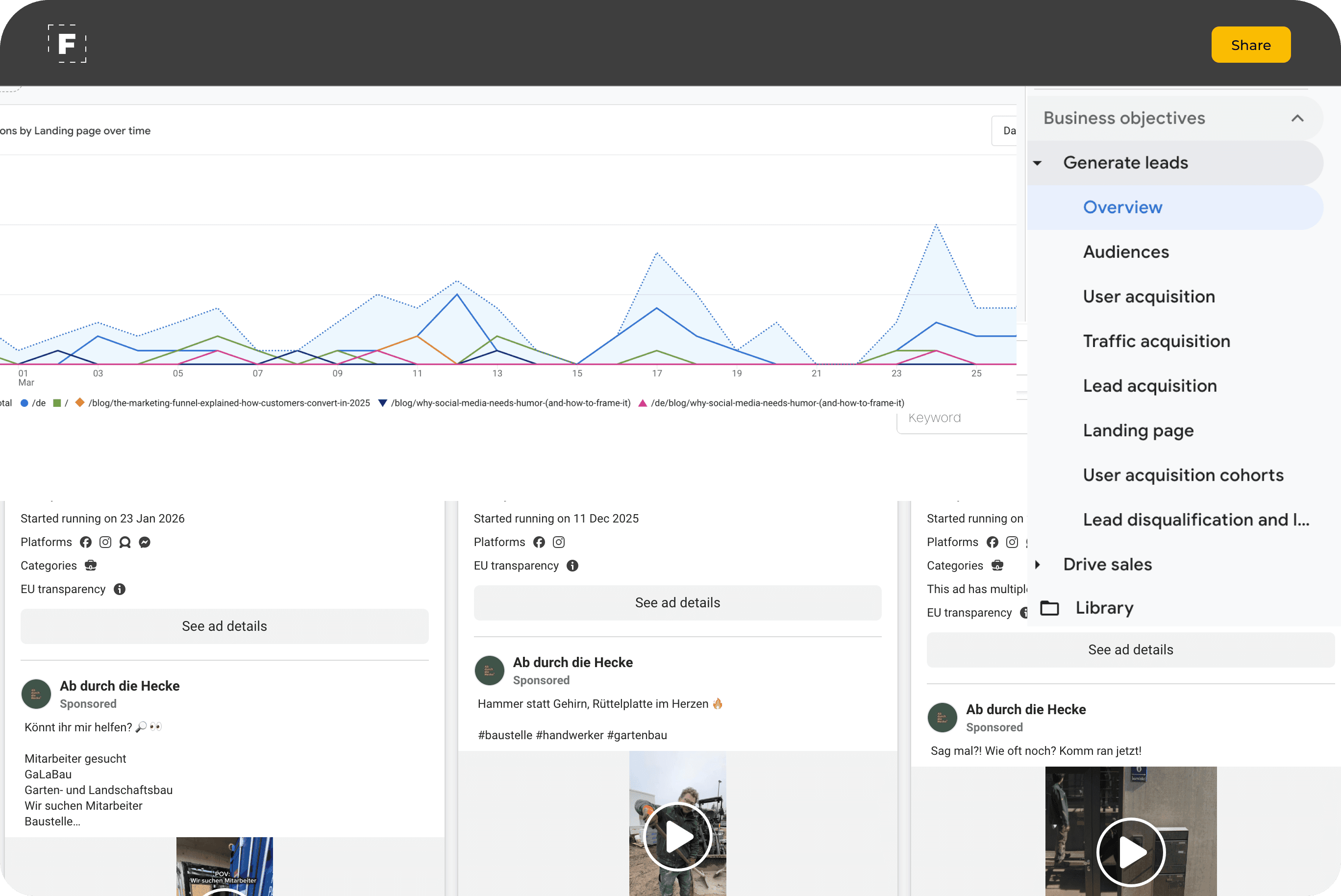 Die meisten Agenturen trennen Strategie von Produktion. Ein Team denkt, ein anderes macht. In dieser Lücke geht vieles verloren. Bei FRAEM sind die Menschen, die die Strategie verstehen, nah an denen, die produzieren. Das ist mehr als ein Prozessvorteil, es ist ein Qualitätsvorteil. In der Umsetzung bedeutet diese Nähe, dass jedes Deliverable mit dem Briefing verbunden bleibt, aus dem es entstanden ist. Nichts driftet. Nichts wird gemacht, nur um einen Slot zu füllen.